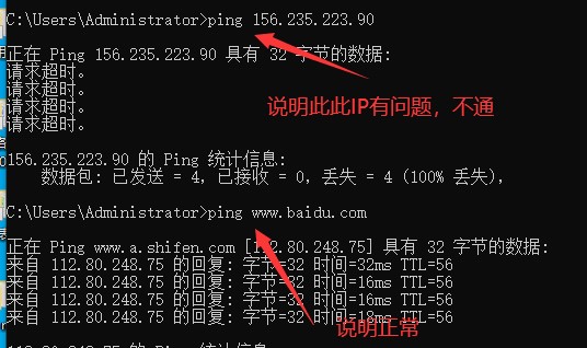 ping可诊断网络,检测网络连接是否通畅或者网络连接的速率,在命令提示符下进行运行。 针对网站方面,PING命令如要用来判断。 一、域名是否生效: 如你的域名是www.baidu.com ,可运行命令:ping www.baidu.com 如执行后显示的IP,是你的主机IP,则表明域名生效; 如显示:请示超时 (肯定域名没生效,是域名原因,可找域名商解决) 二、测试你的主机IP是否正常通: 如你的主机IP是:112.80.248.75 ,想知道此IP是否通;可运行命令:ping 112.80.248.75 同样结果如正常,则会显示请求回复 值及速度; 如显示:请示超时;(则说明不通,可找主机商咨询原因) 可参考如下图: