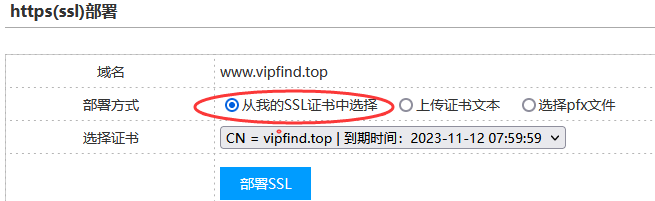 第四步:一般域名带www和不带www都要部署,部署时点即已存在 的证书即可;如下图: